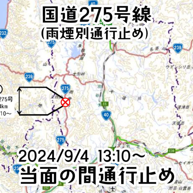 2024年9月4日 / Last updated : 2024年9月4日 幌加内町観光協会 通行止めのお知らせ(国道275号線雨煙別) 国道275号線雨煙別で通行止めが発生しています。それに伴い、ジェイアールバスも運休となっています。(原因について、町の告知端末上では「路面変状のため」と表示されています) 通行止め箇所をまたぐ移動の際は、下記迂回路を参考 […]